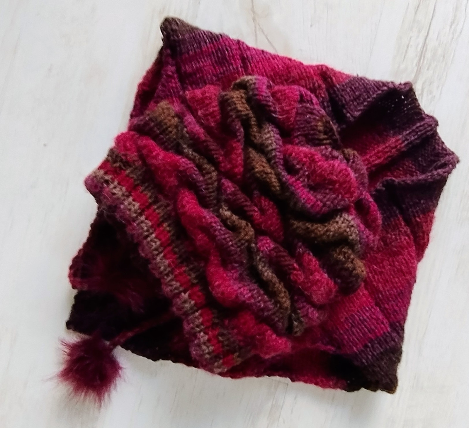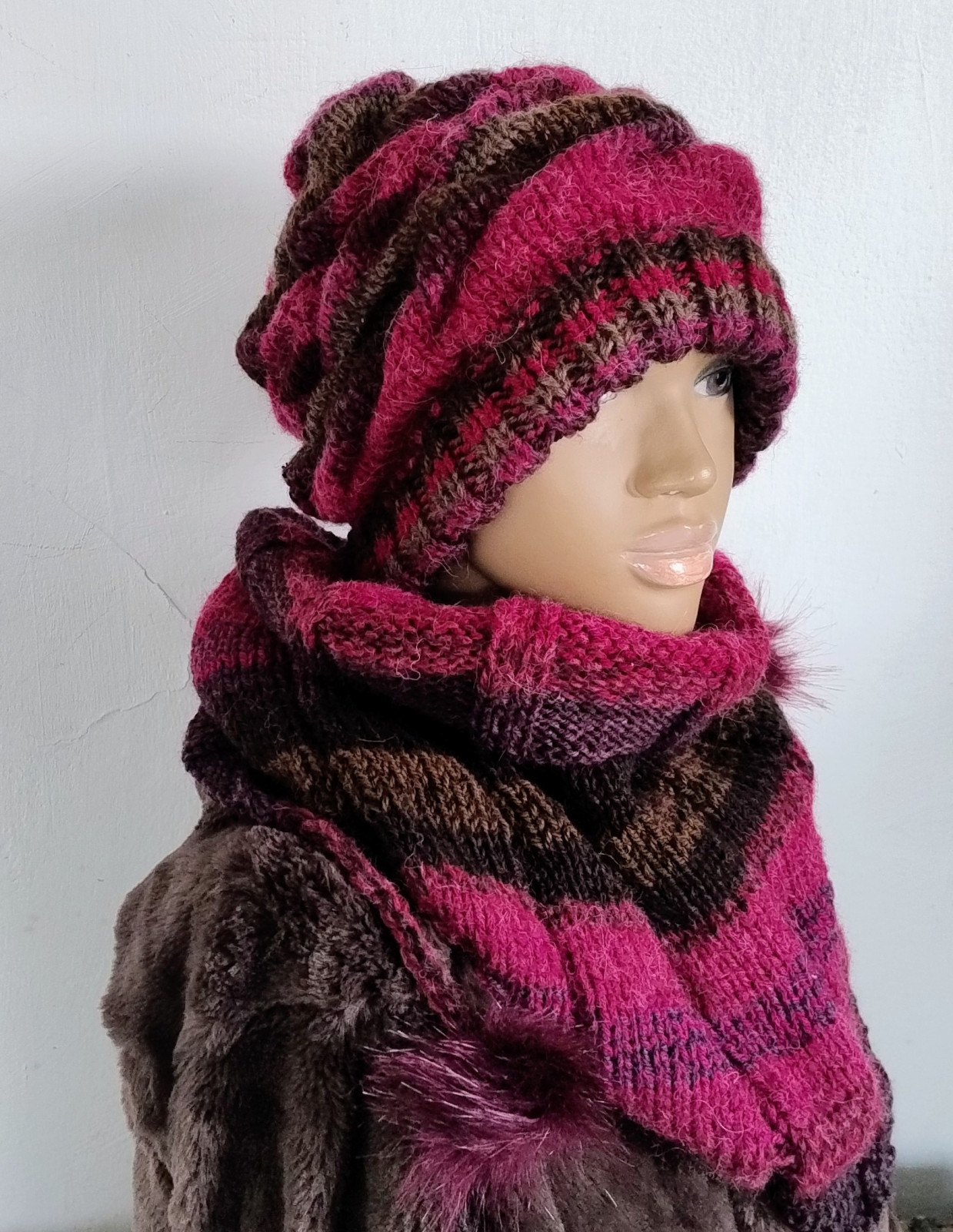 Czapka plus szal-chusta zakończona pomponami z futerka. Mieszanka wełny i akrylu.rozmiar uniwersalny.jedyny model.realizacja na zamówienie