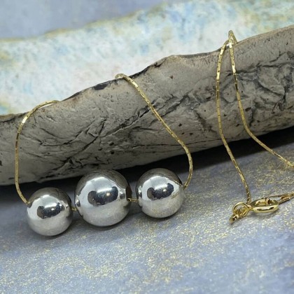 Nowoczesny łańcuszek ze srebrnymi kulami nada wyrafinowania każdej stylizacji oraz urozmaici nasz codzienny wygląd. Będzie trafionym prezentem dla bliskiej osoby, która ceni sobie elegancję i minimalizm. Łańcuszek wykonany ze srebra został pokryty cienką warstwą złota. Naszyjnik łączy w sobie złoto i srebro, co współgra z aktualnymi trendami. Srebrne kule są puste w środku, dzięki czemu naszyjnik jest praktyczny w noszeniu.
