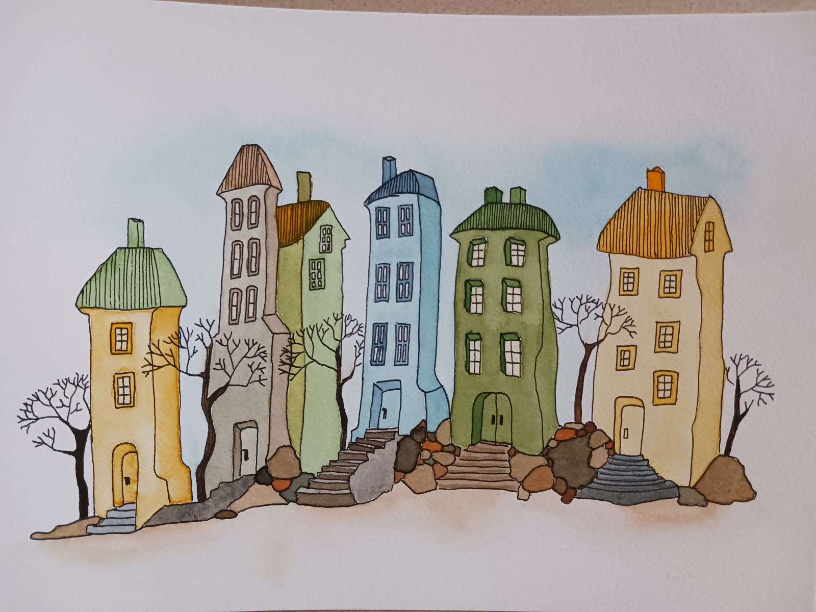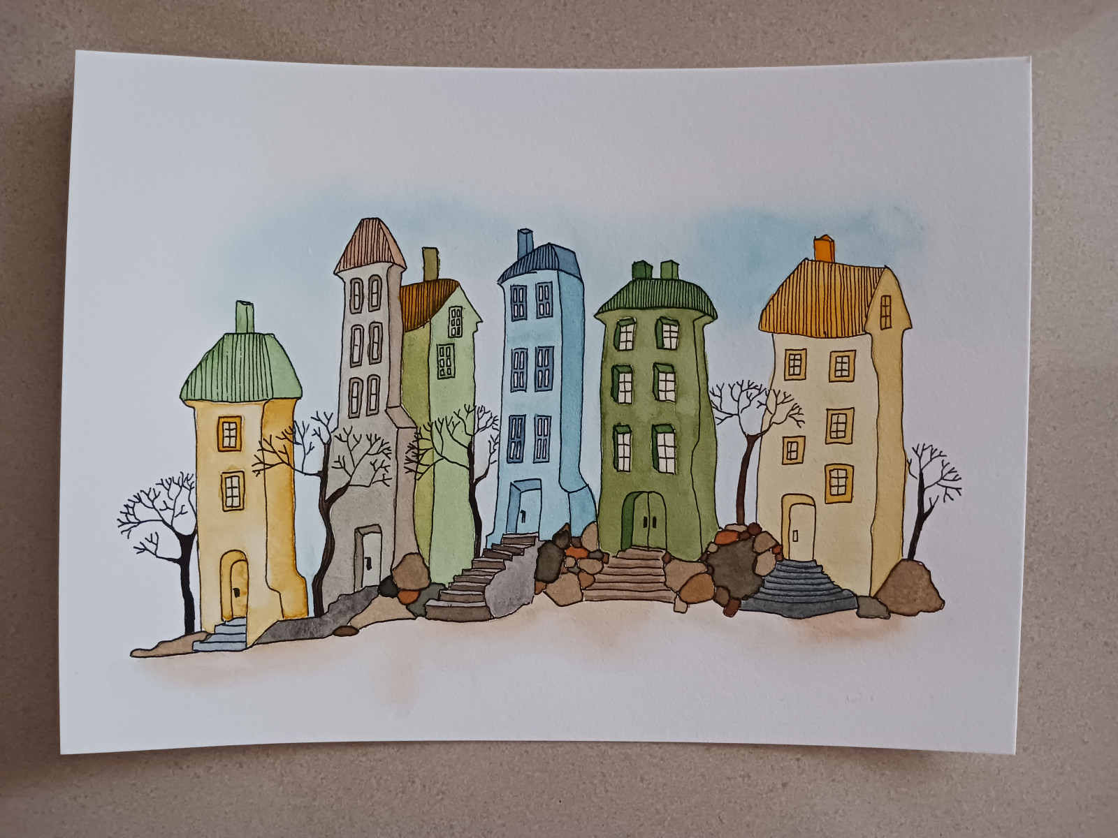 Akwarela, Akwarelka Hand Made - Domki - do oprawy, 19x26cm