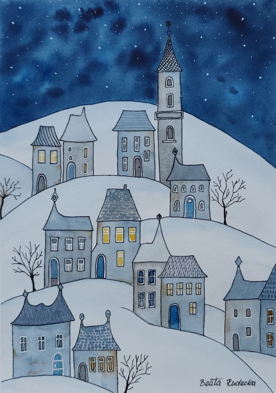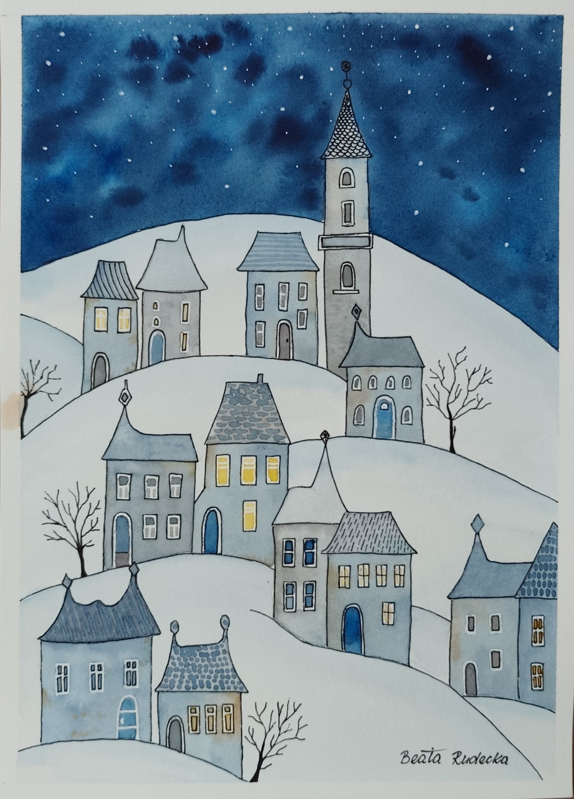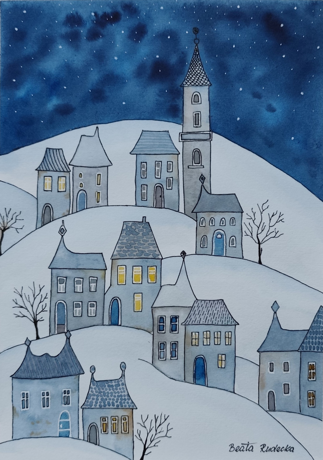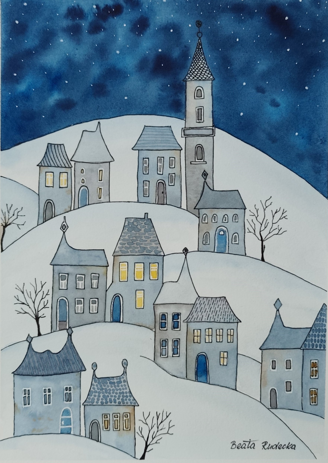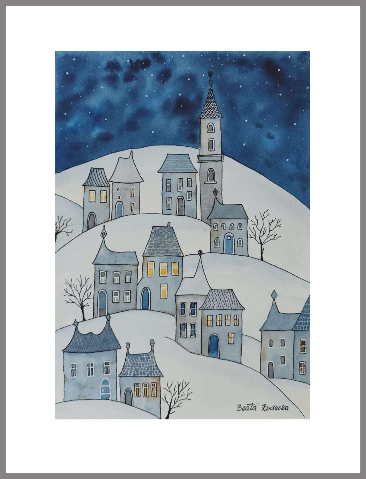 Akwarela Akwarelka Obraz pt: Bajkowa Kraina Nocą