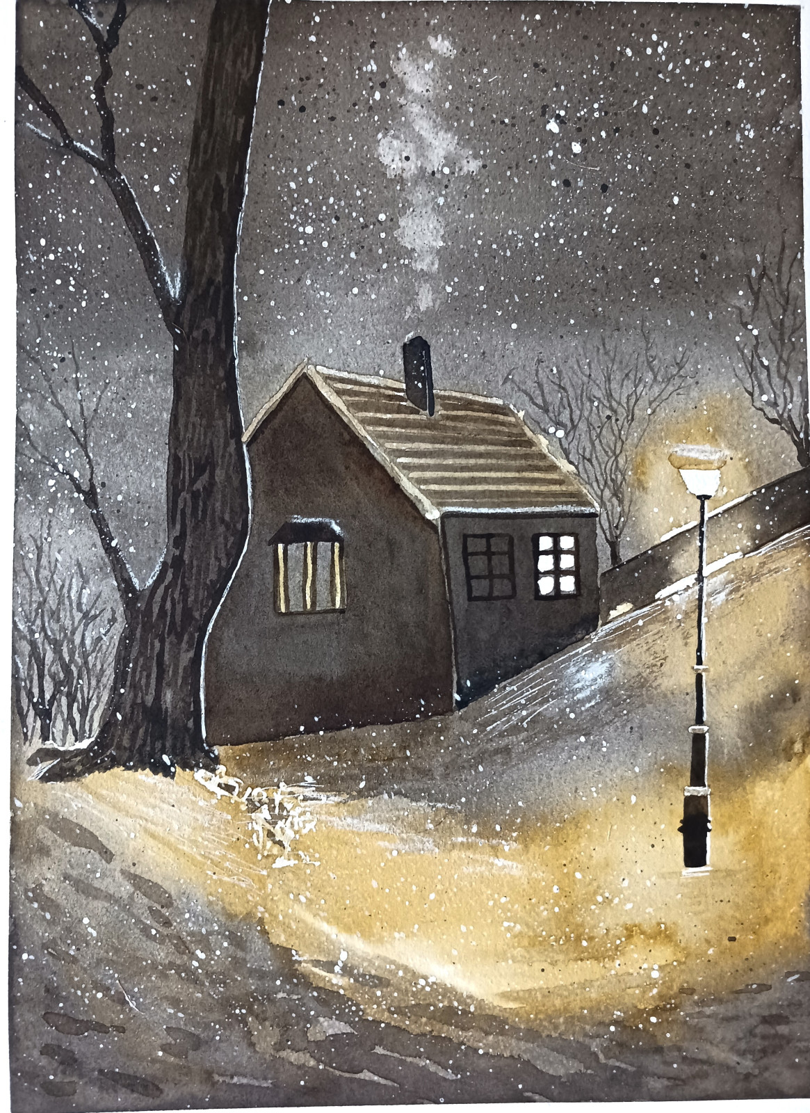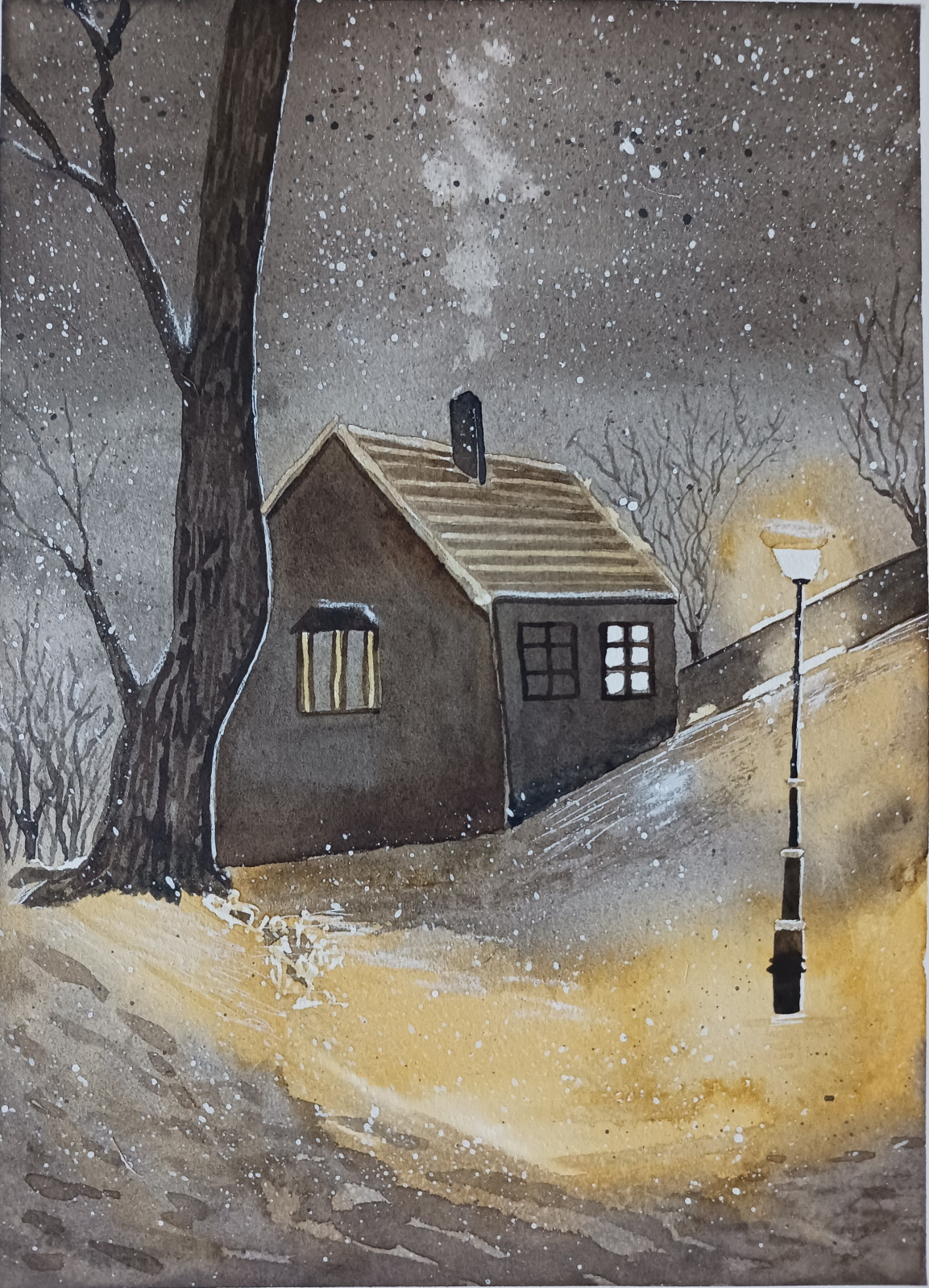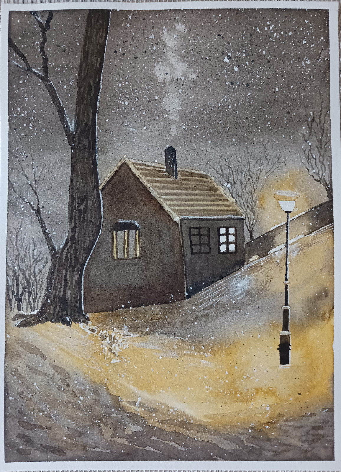 Akwarela Akwarelka Obraz pt: Cicha noc