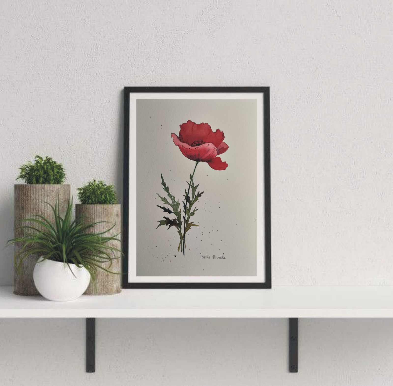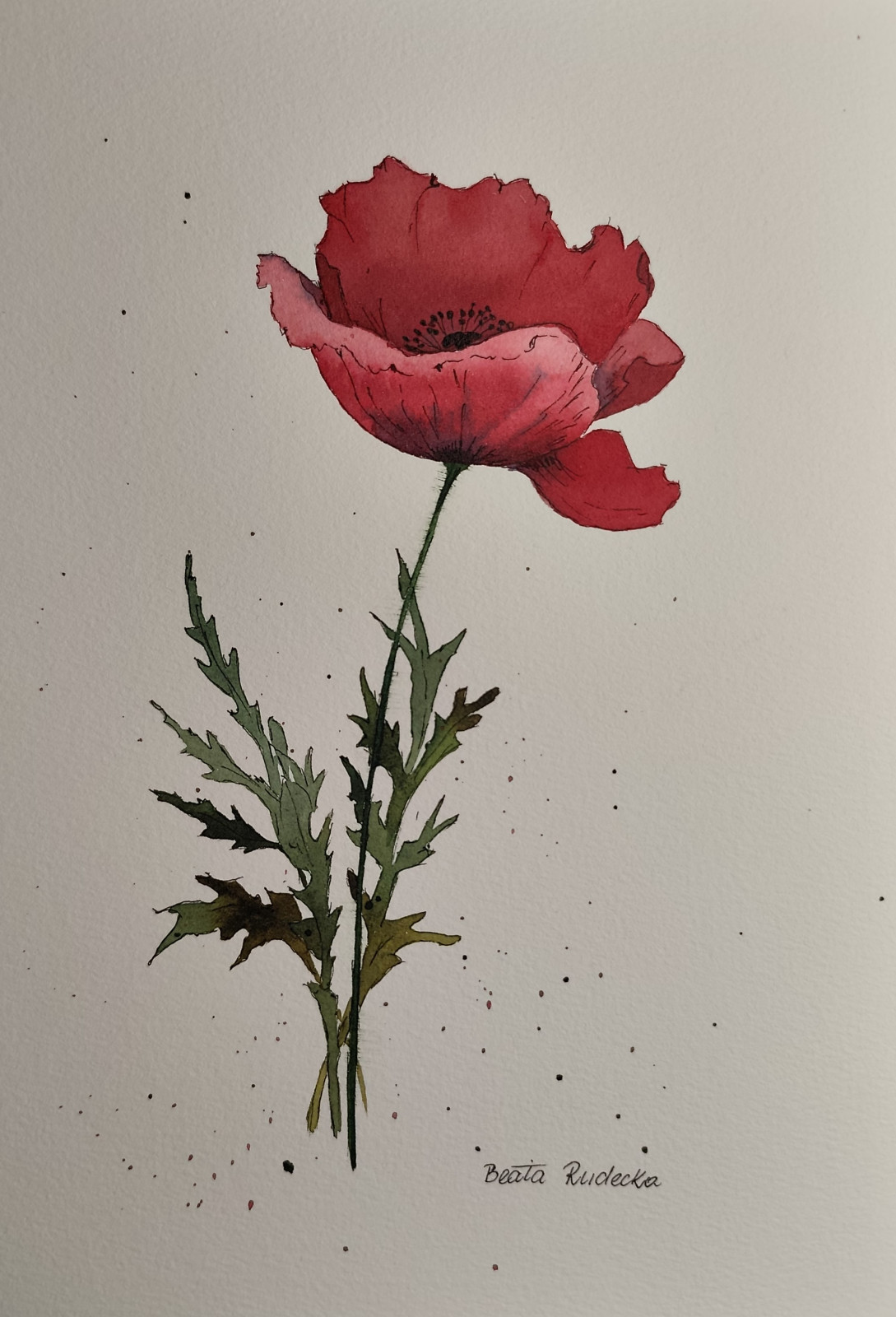 Akwarela Akwarelka Obraz pt: Czerwony Mak