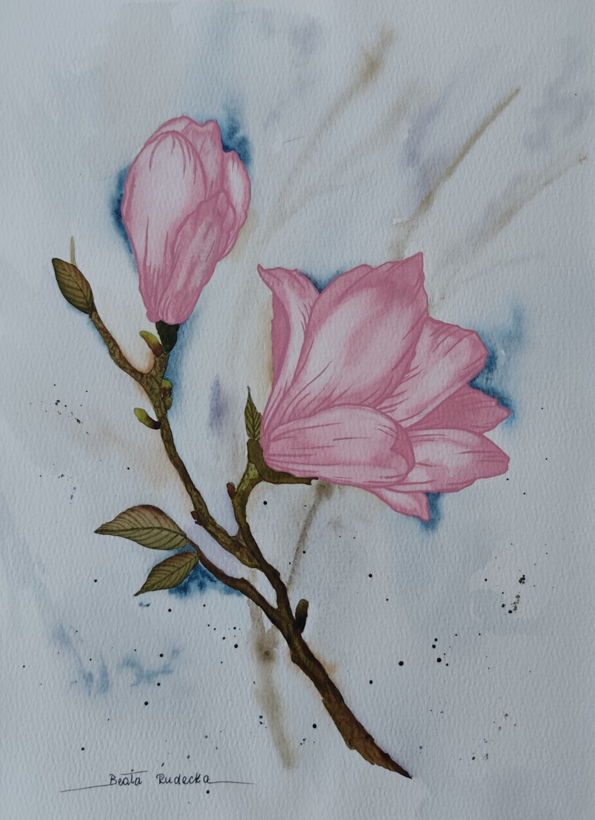 Akwarela Akwarelka Obraz pt: Magnolia 22,5 x 30