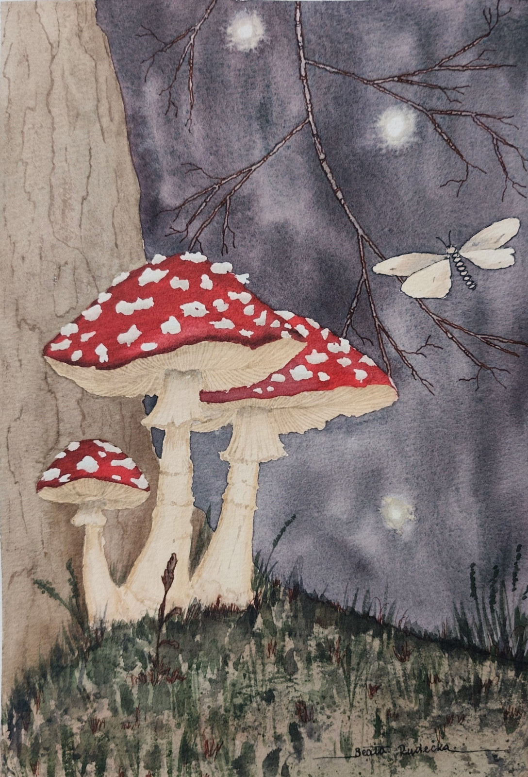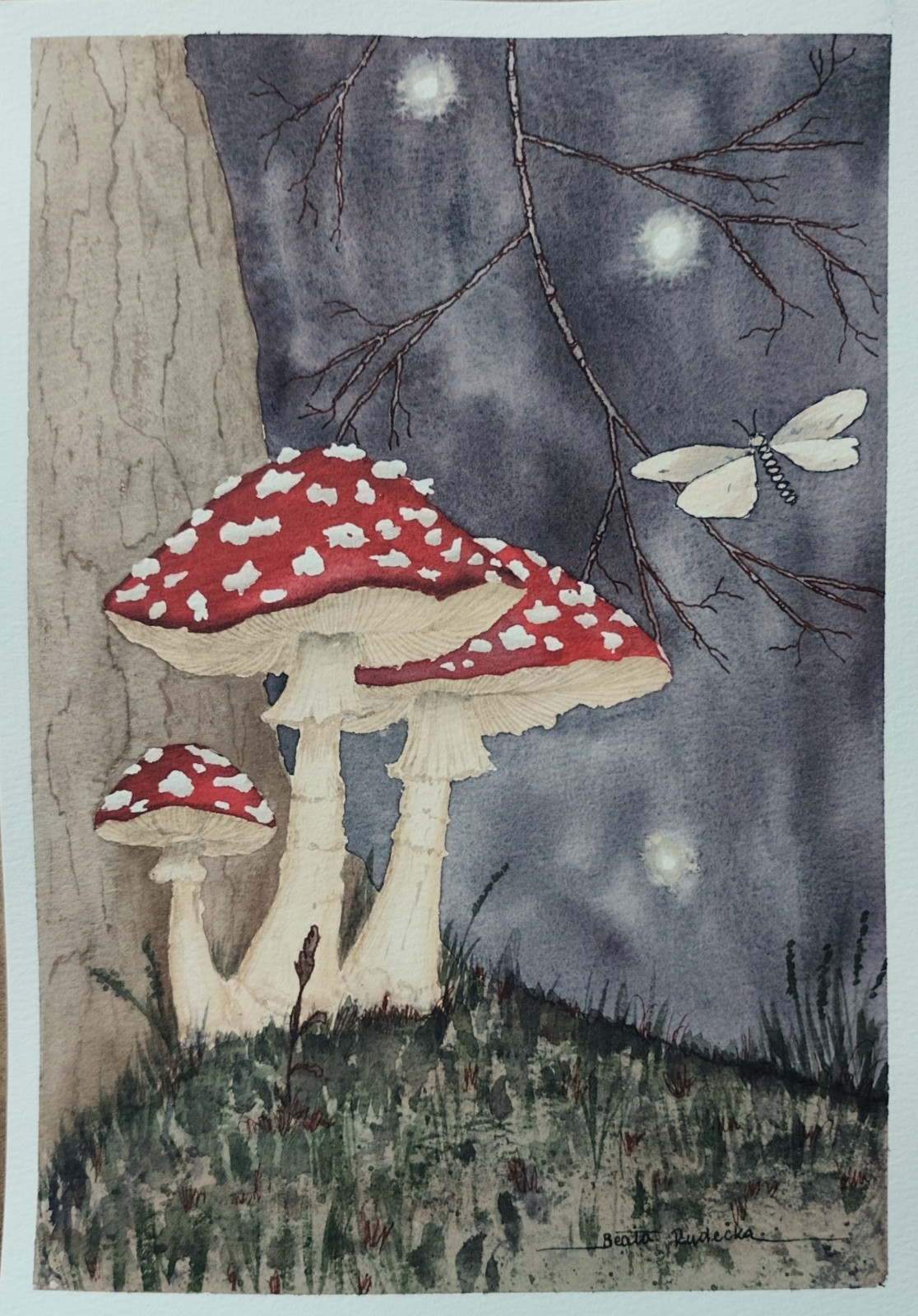 Odkryj magię ręcznie malowanej akwareli! „Muchomorki” to jedyny w swoim rodzaju, autorski obraz, który wniesie odrobinę natury i artystycznego uroku do Twojego domu.