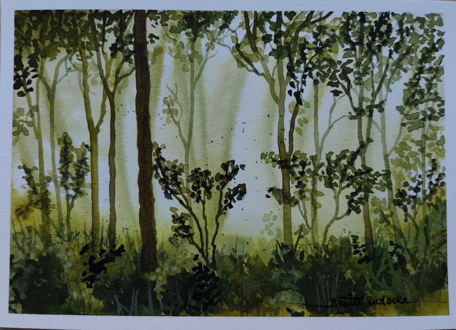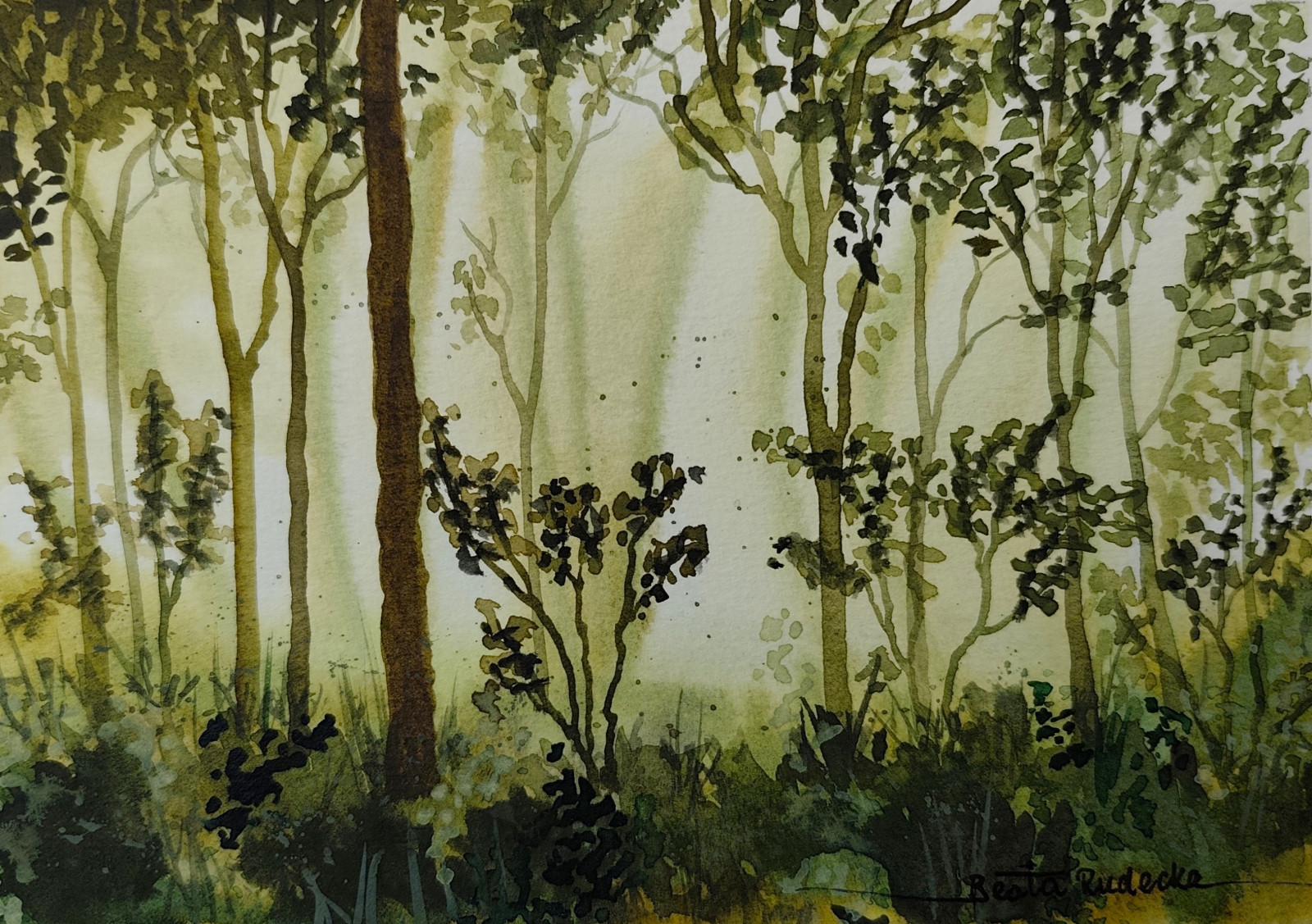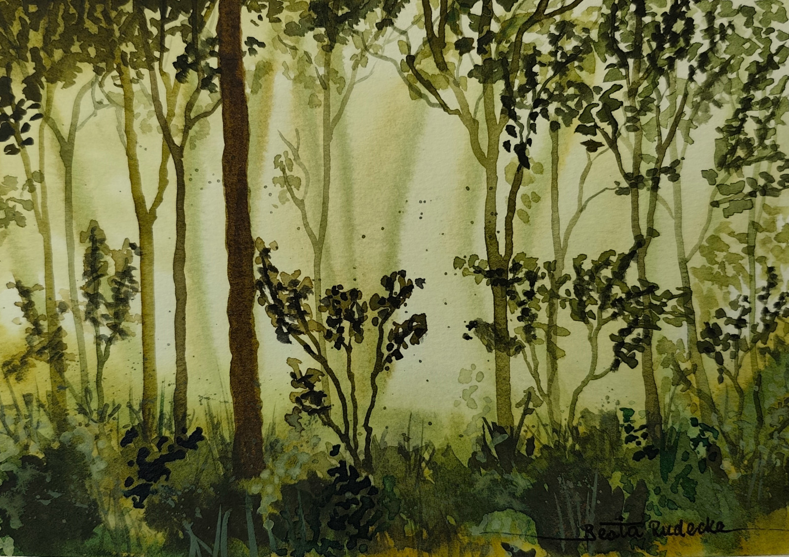 Akwarela Akwarelka Obraz pt. Pomiędzy drzewami