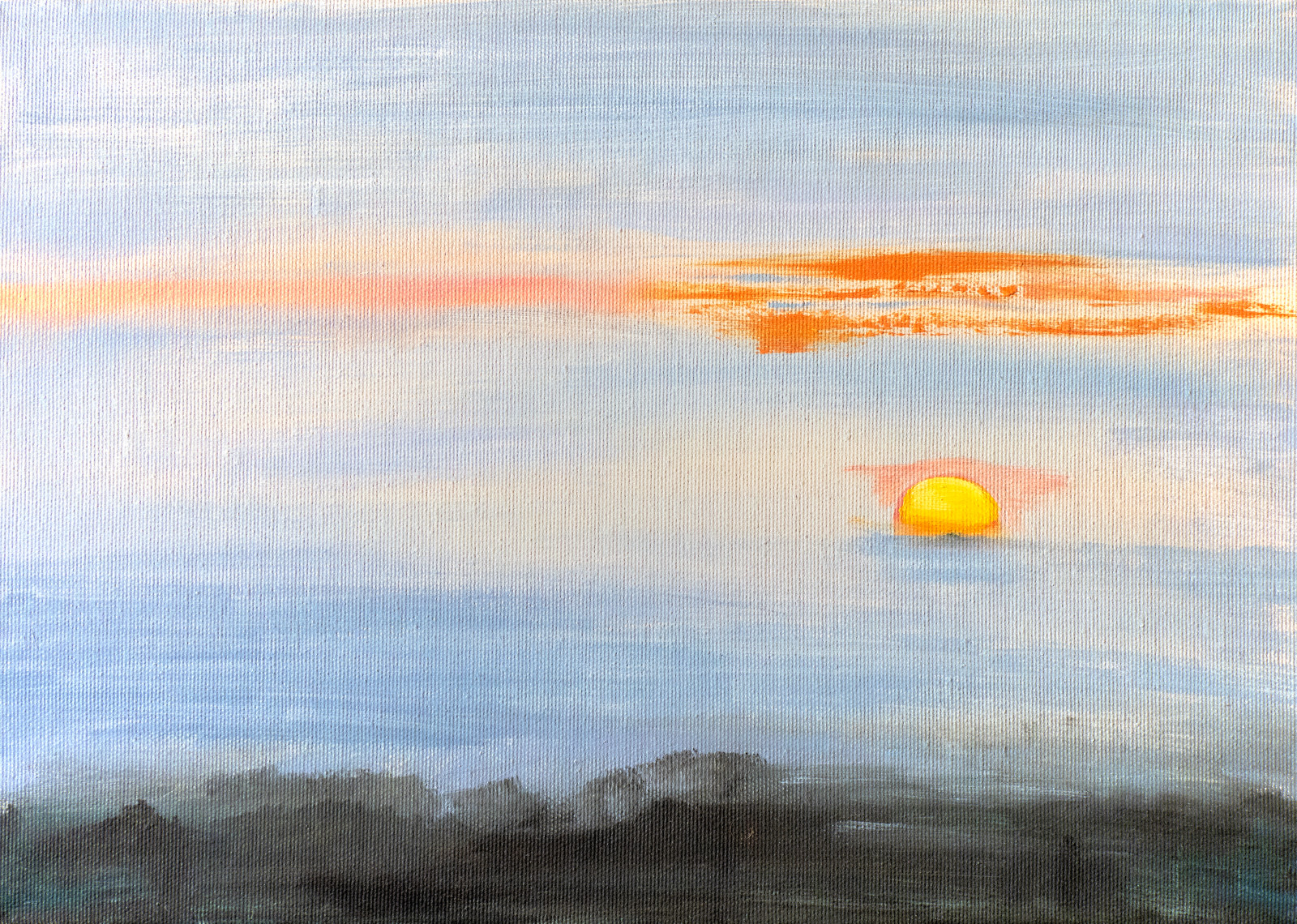 Pejzaż z serii mniejszych, szkicowych, syntetycznych przedstawień o realistycznej tematyce.