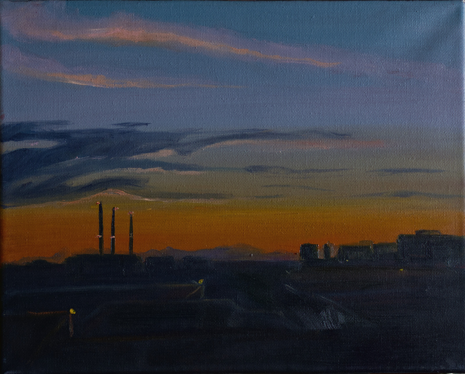 Pejzaż z serii mniejszych, szkicowych, syntetycznych przedstawień o realistycznej tematyce.