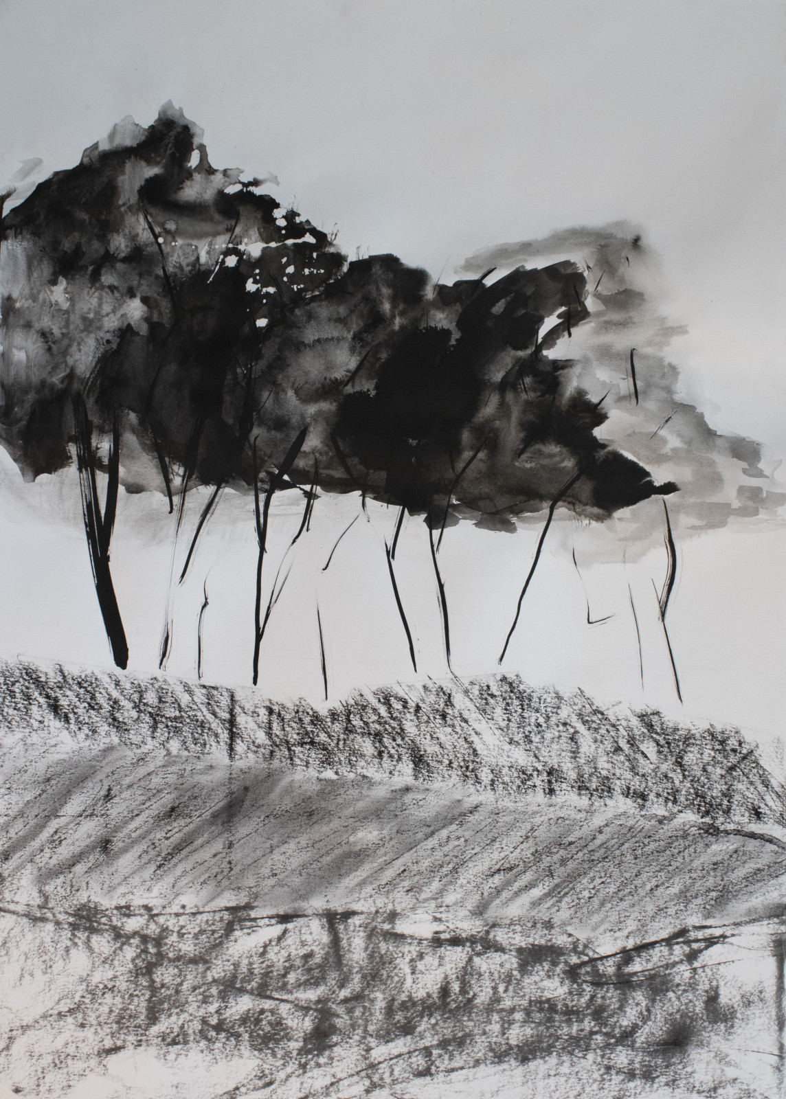 Rysunek wykonany węglem i tuszem na papierze