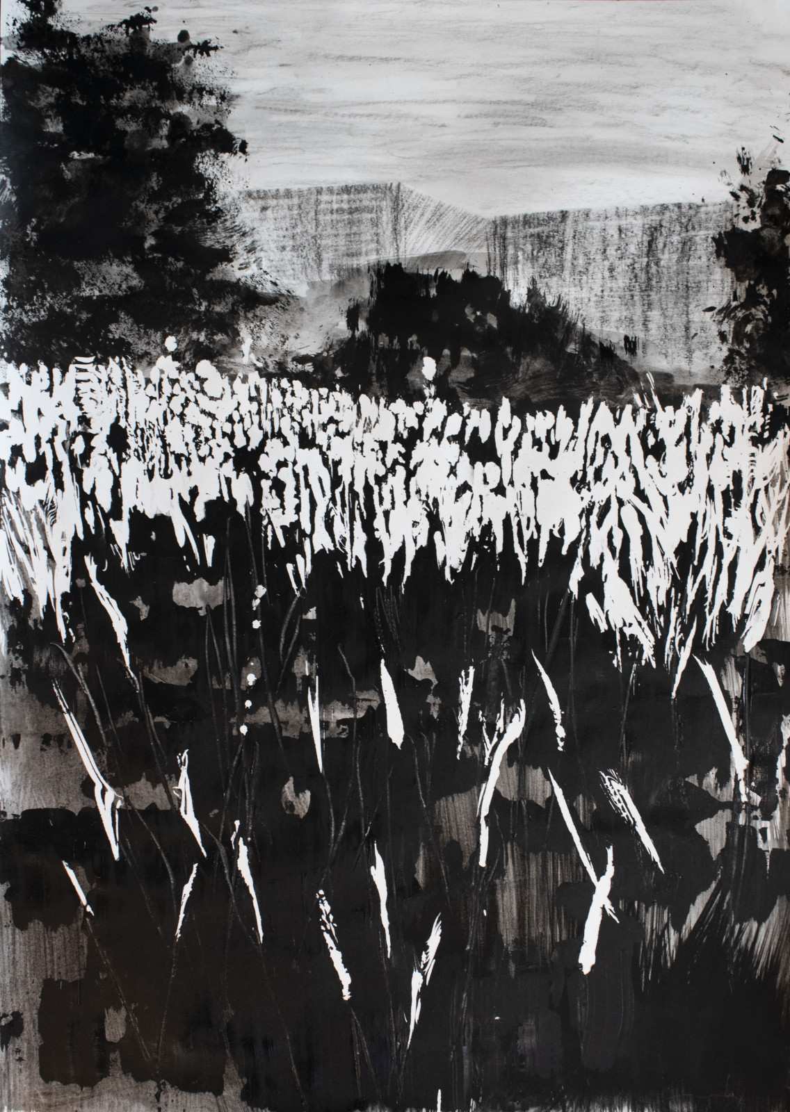 Akryl, tusz, węgiel na papierze