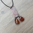 Naturalny bursztyn bałtycki w dwóch odcieniach i miedź młotkowana delikatnie oksydowana.