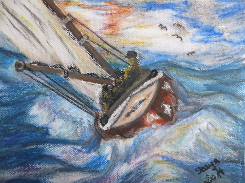 Impresja. Obraz malowany, pastel olejna malowana na papierze Carson250g, bez oprawy. Podpisana.