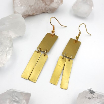 Efektowne, długie kolczyki wykonane z mosiądzu.
