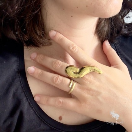 Nie jest to typowy pierścionek. Jego surowa faktura i niepowtarzalny wzór sprawiają, że jest on dziełem sztuki, które możemy nosić na palcu. Wypolerowany do perfekcji, zdobywa z czasem szlachetny, złoty odcień. Ale nie bój się - zmiana koloru jest odwracalna. W zaciszu swojego domu, z łatwością przywrócisz mu pierwotny blask.