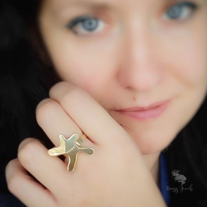 Pierścionek wykonany ręcznie z mosiądzu jubilerskiego.