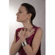 Prosta i efektowna szeroka bransoleta, wykonana od podstaw z metalu (alpaka - nowe srebro), matowe wykończenia. Szerokość ok 3,5 cm, rozmiar uniwersalny.