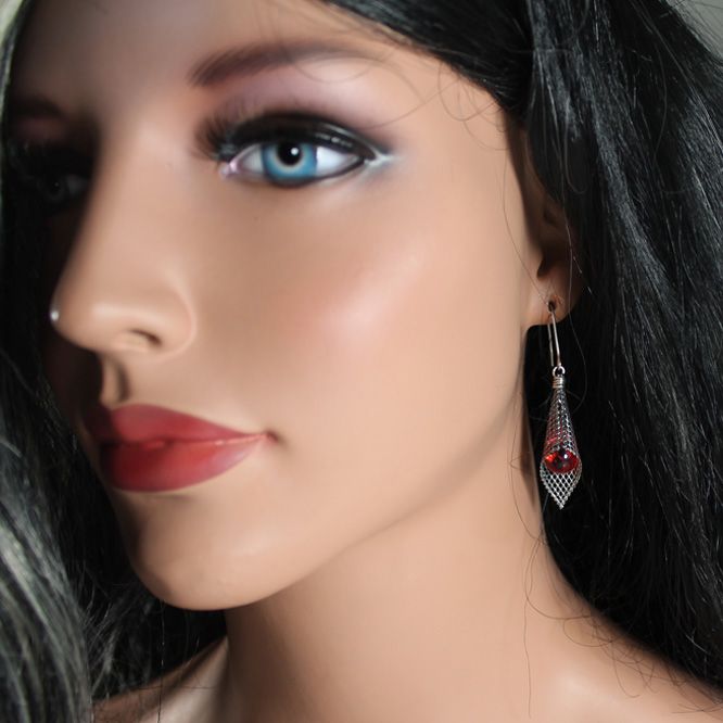 Szklane krople Jablonex oprawione w ręcznie formowaną metalową siateczkę. Całkowita długość ok. 6,5 cm, bigle srebrne. Podobne kolczyki dostępne są w różnych kolorach, a także jako klipsy. Zobacz inne moje przedmioty lub zamów :-)
