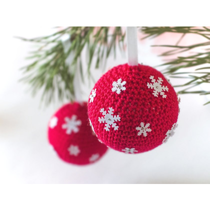 Bombki mają średnicę 6cm, zrobione są na szydełku z bawełnianej włóczki.
