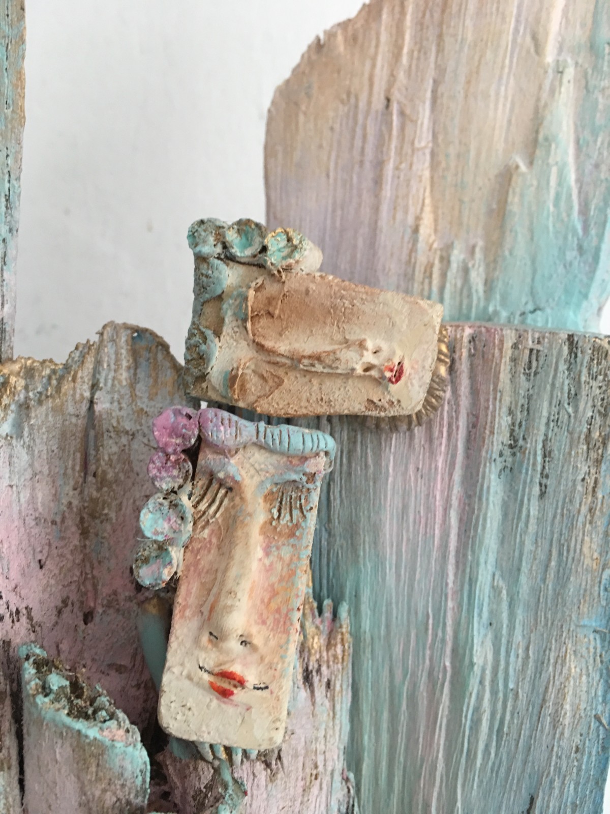 Autorska Para Daniołów z drewna w klimacie abstrakcji i stylu shabby chic.