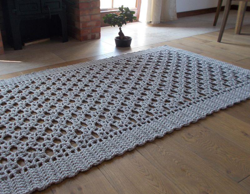 Dywan wykonany ręcznie. Dwustronny. Wymiary 160 cm x 110 cm. Starannie wykonany, ładnie układa się na podłodze. Oryginalna ozdoba salonu, pokoju dziecięcego, przedpokoju lub łazienki. Zastosowany materiał - 5,5 mm sznurek w 100% bawełniany bezpieczny również dla dzieci z alergią. Można prać w temp.30 st, suszyć na leżąco. Dywan dostępny na zamówienie, również w innym rozmiarze lub kolorze wg załączonego wzornika kolorów. Czas oczekiwania ok. 3-4 tyg.