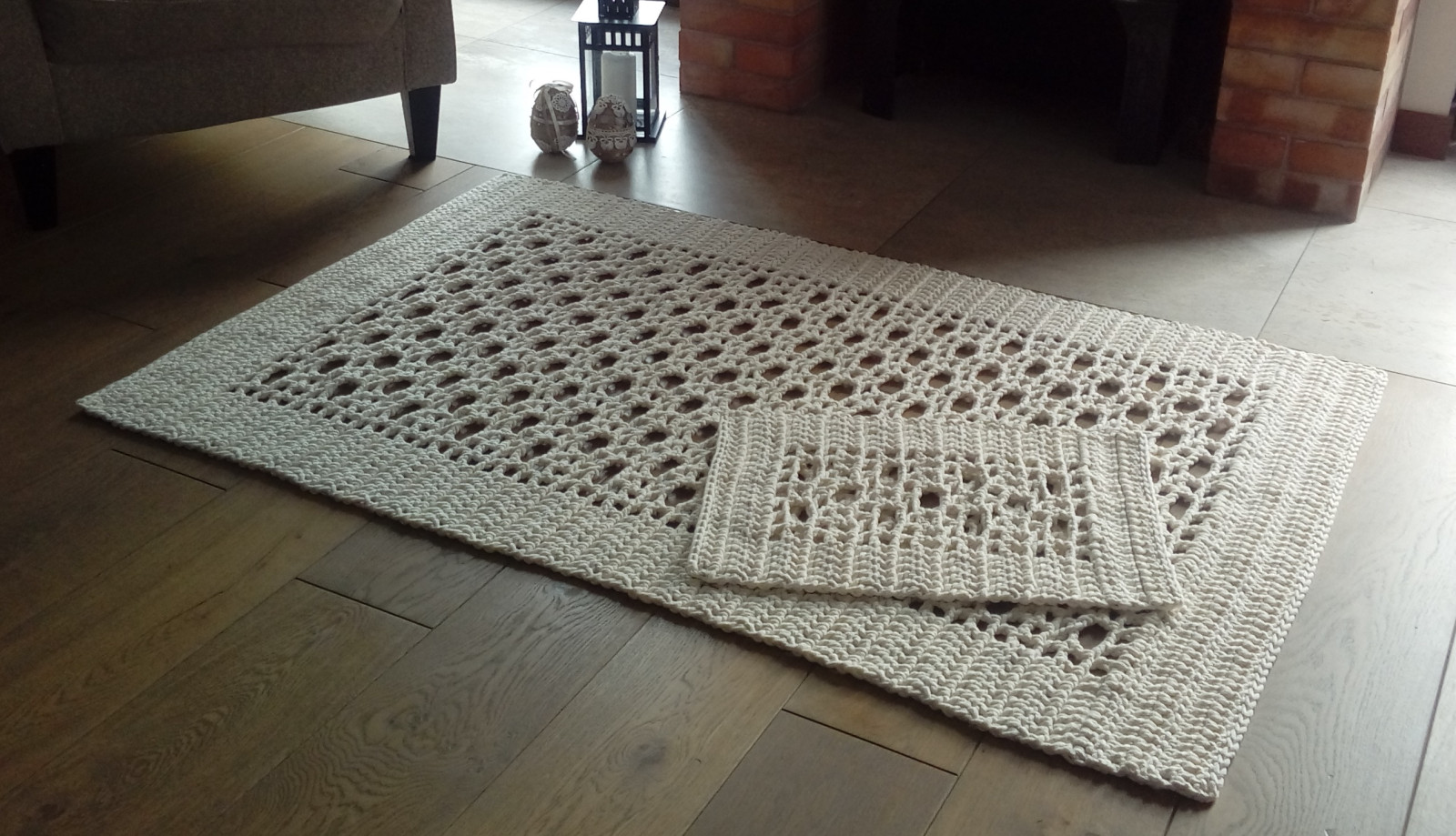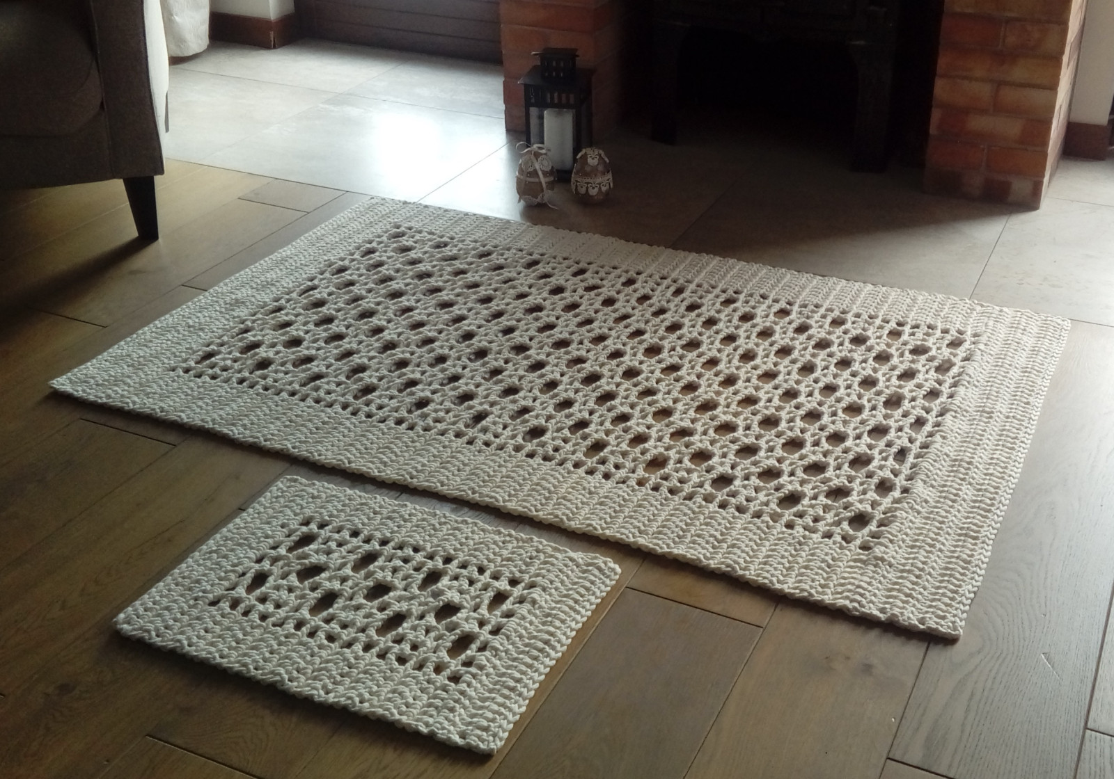 Komplet 2 dywanów wykonanych ręcznie, kolor ecru.