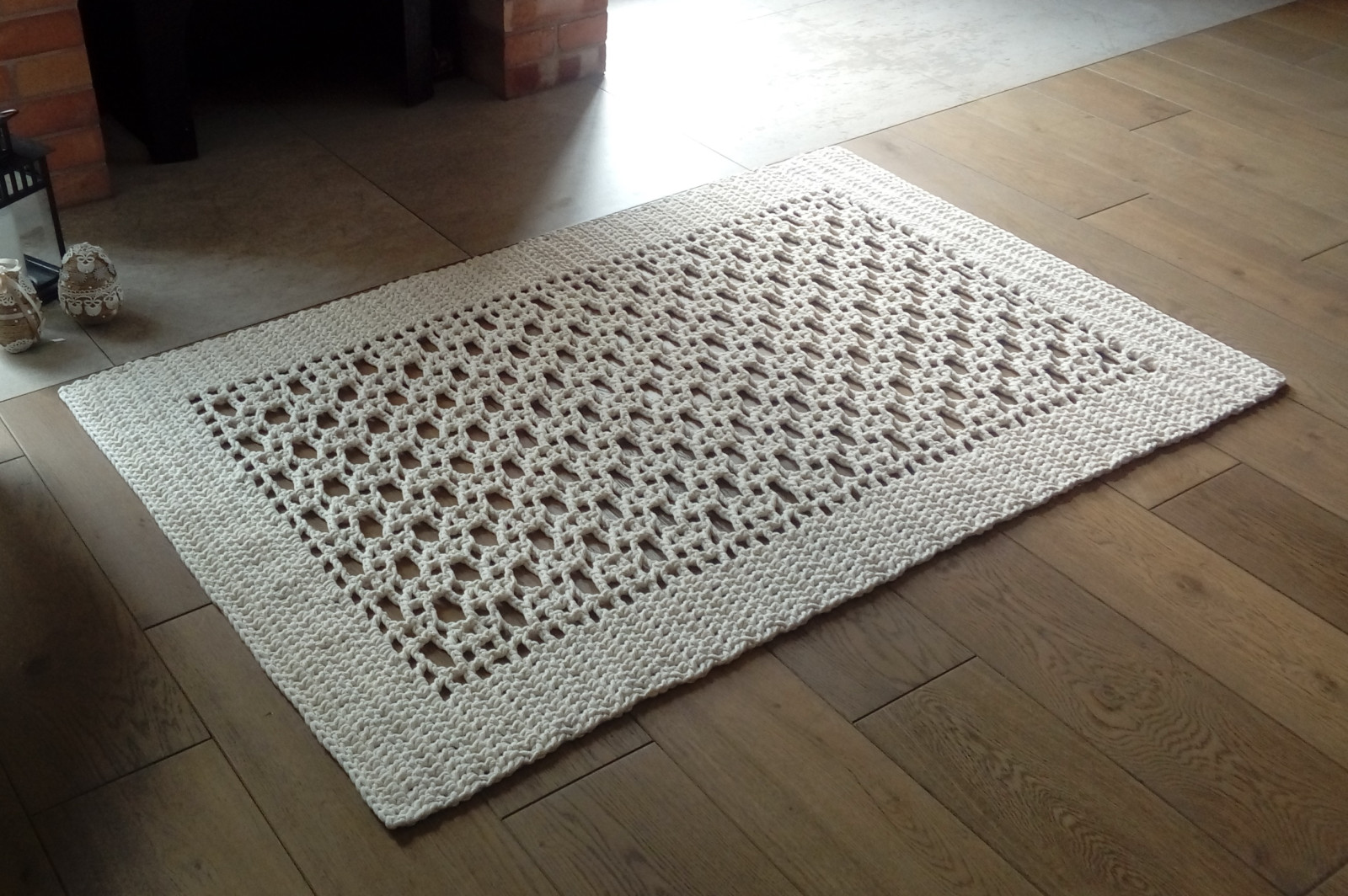 Dywany są dwustronne - wzór jest identyczny z obu stron. Zastosowany materiał - 5 mm sznurek w 100% bawełniany bezpieczny również dla dzieci z alergią. Sznurek najwyższej jakości wyłącznie od polskich producentów. Łatwe w utrzymaniu w czystości, można prać w temp. 30 st.
