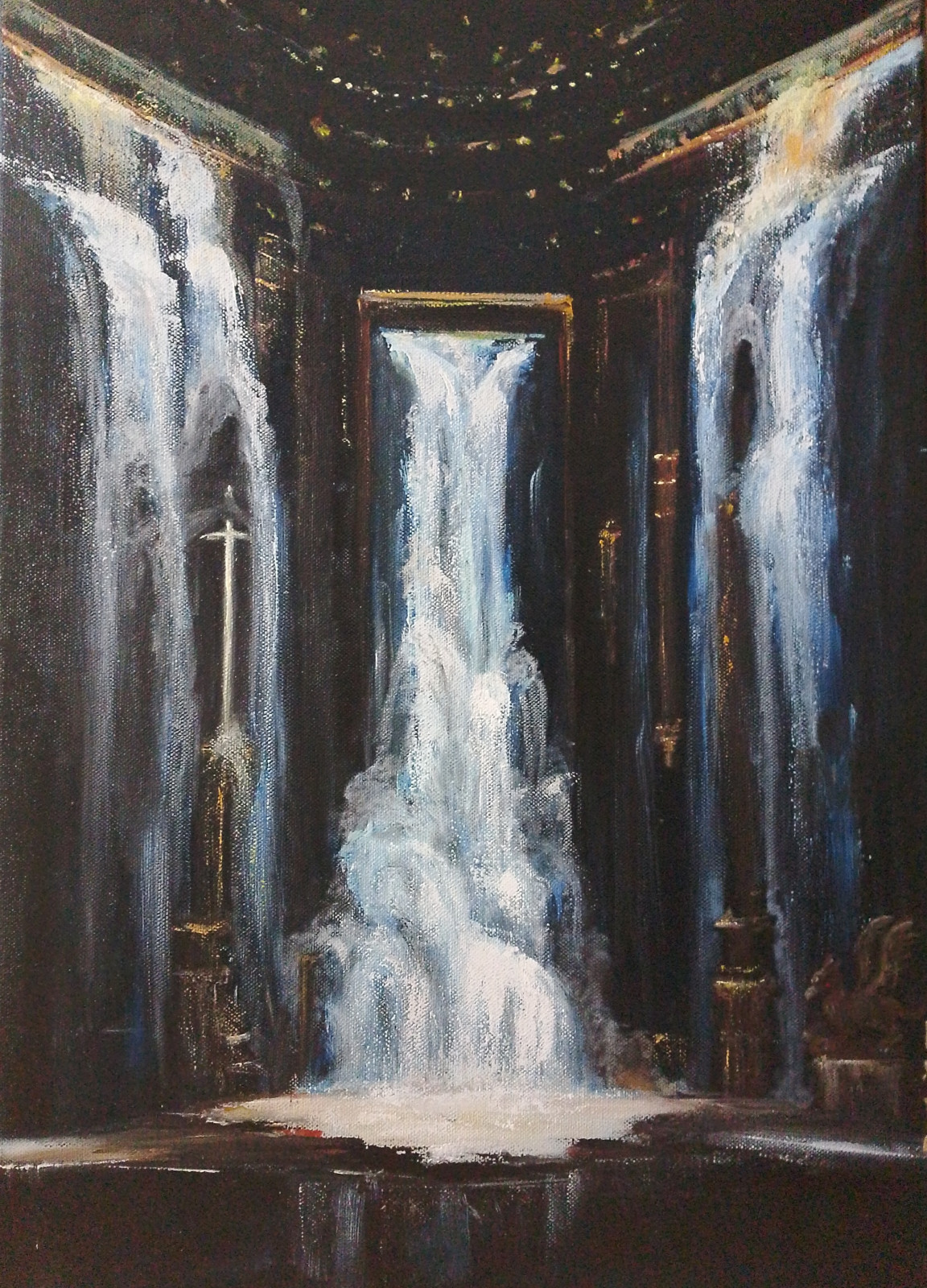 Zaginiona komnata - ręcznie malowany obraz olejny. Płótno na blejtramie. Obraz ma zamalowane boki w formie kontynuacji i nie wymaga oprawiania w ramę.