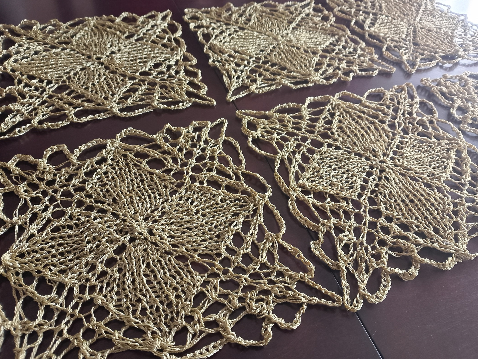 Komplet serwetek podkładek na drutach w kolorze starego złota z połyskiem