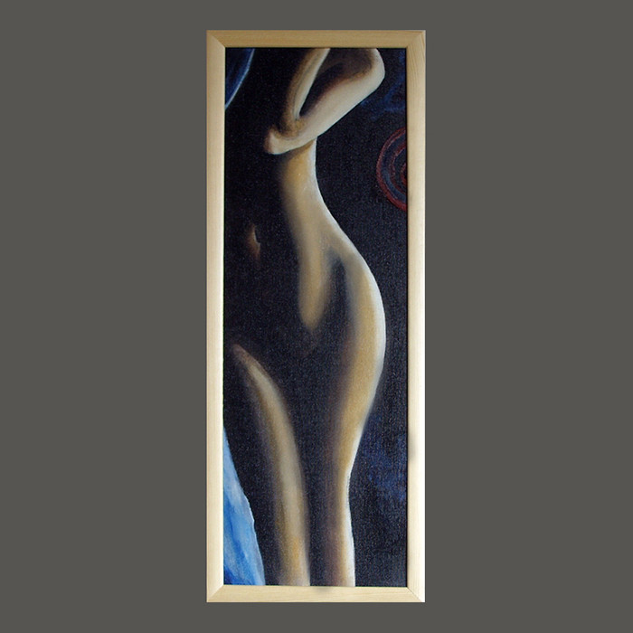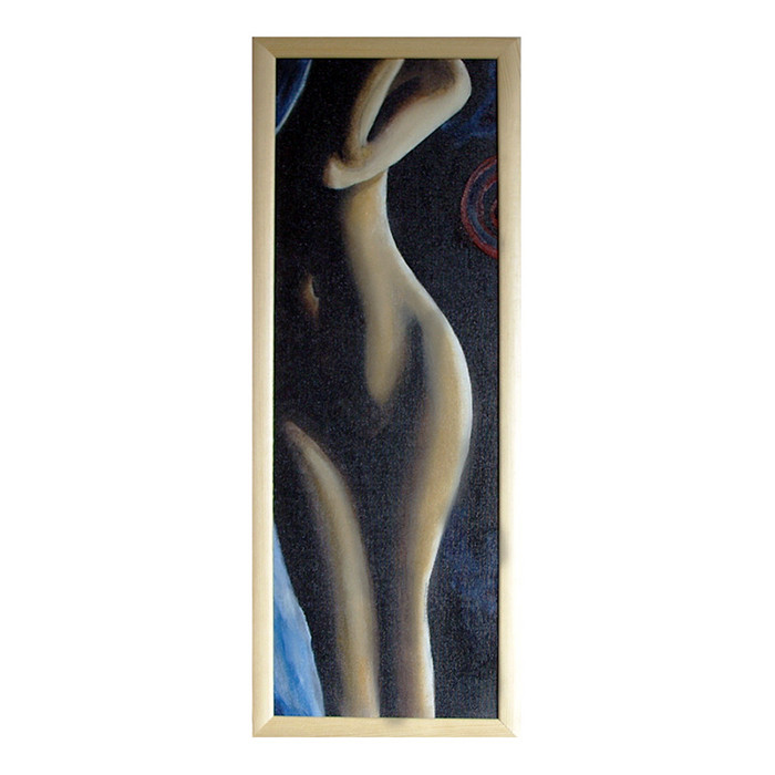 Stonowany, subtelny akt kobiecy. Olej na płótnie. Technika sfumato w połączeniu z impastami (widoczna delikatna faktura farby). Sygnowany i datowany. Wymiary całkowite 63,5 x 23,5 cm w tym grubość oprawy ok 2 cm. Obraz sprzedawany z widoczną na zdjęciach wąską, drewnianą ramą. Zabezpieczony odpowiednim medium przed wpływem czynników zewnętrznych. Do pracy załączam certyfikat i metryczkę autora. Polecam.