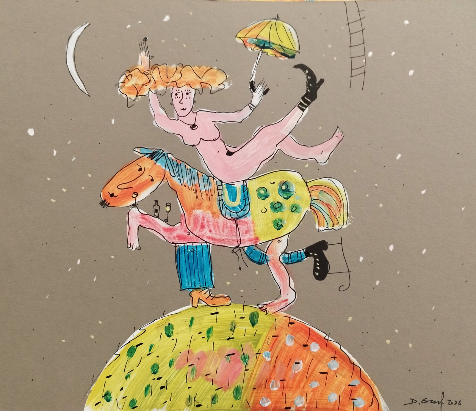 Grafika/rysunek na kartonie cannsona malowana akrylami 29x25 Praca sygnowana !