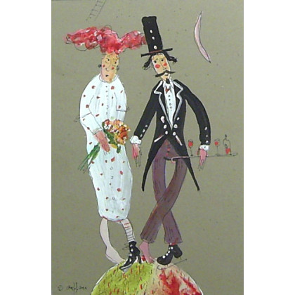 Grafika/rysunek tuszem lawowanym i akrylem na barwionym kartonie Canson 19.5x29.5 Praca sygnowana !