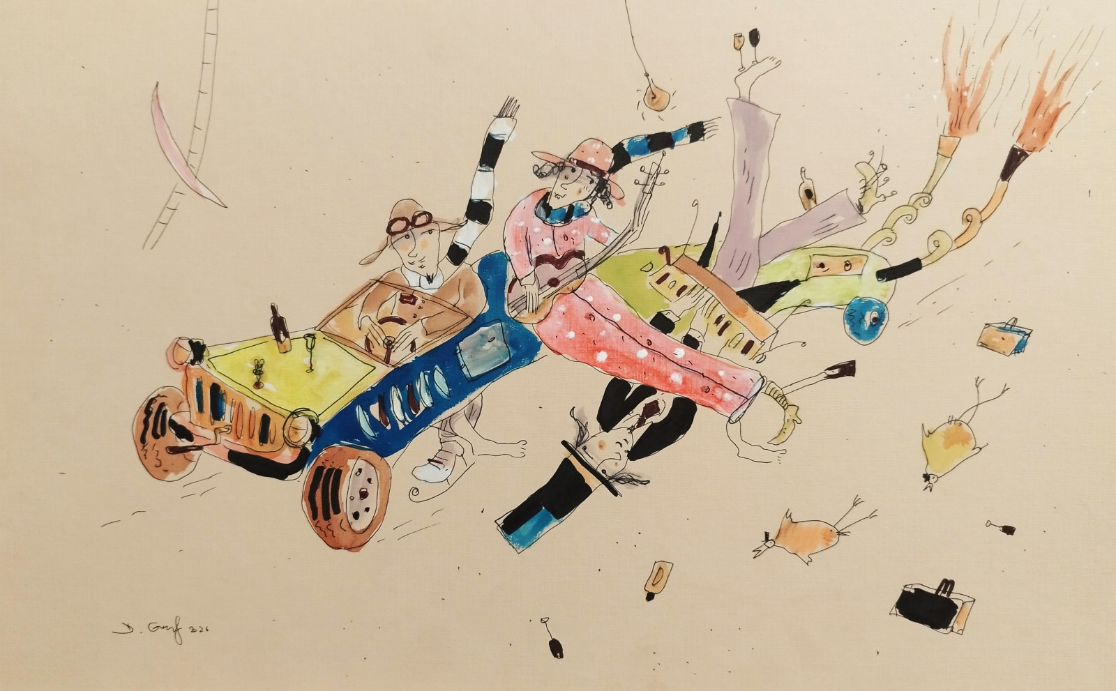 Grafika/rysunek tuszem lawowanym na białym kartonie Canson 43.5x27.5 Praca sygnowana !