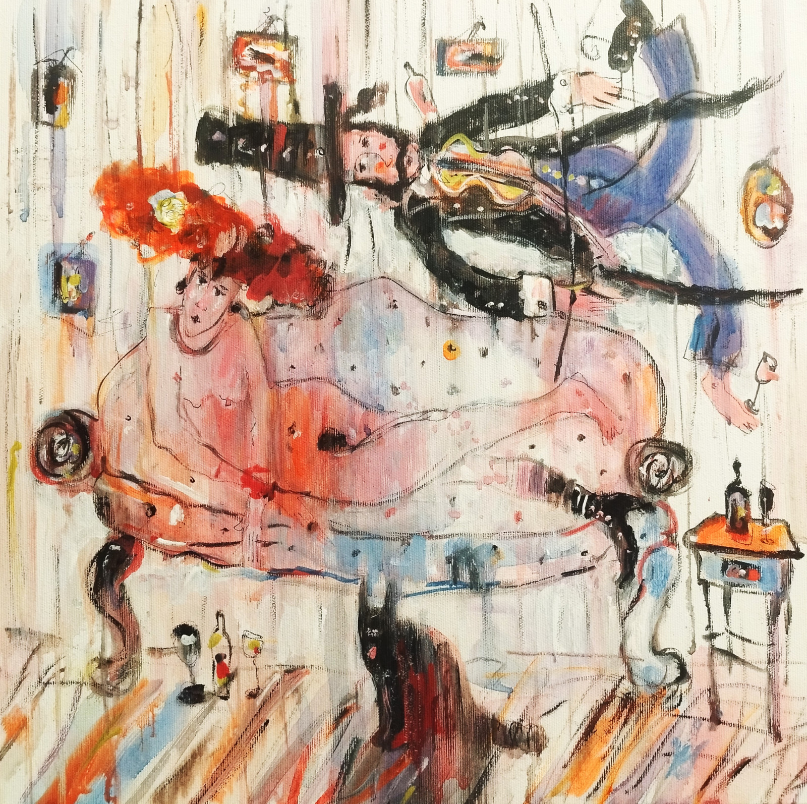obraz na płótnie 40x40 werniksowany i sygnowany!!Boki obrazu białe / możliwość zamalowania pod kolor obrazu na wyraźne życzenie!/