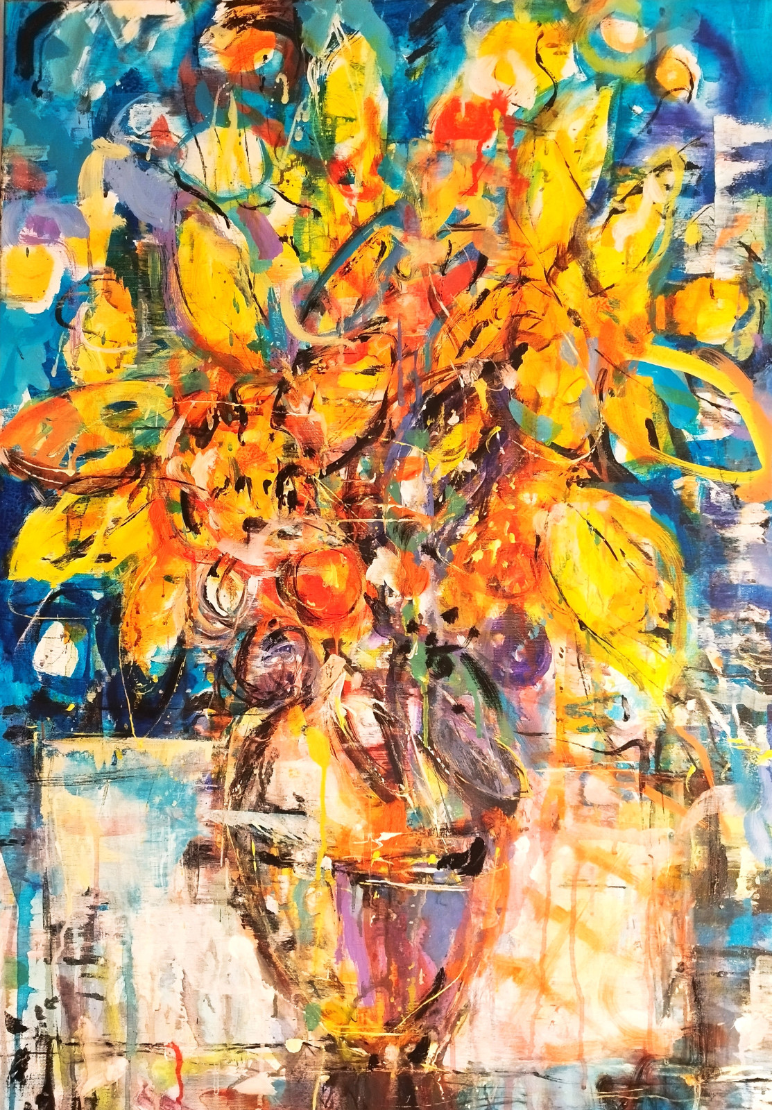 obraz na płótnie 100x70 mix olej-akryl,werniksowany i sygnowany!!Boki obrazu białe / możliwość zamalowania pod kolor obrazu na wyraźne życzenie!/Certyfikat autentyczności! Miejscowo faktura farby.
