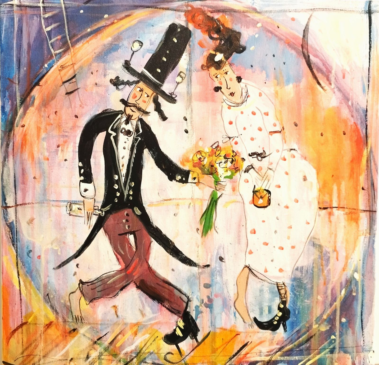 obraz na płótnie 40x40 mix olej-akryl,werniksowany i sygnowany!!Boki obrazu zamalowane pod kolor. Certyfikat autentyczności!