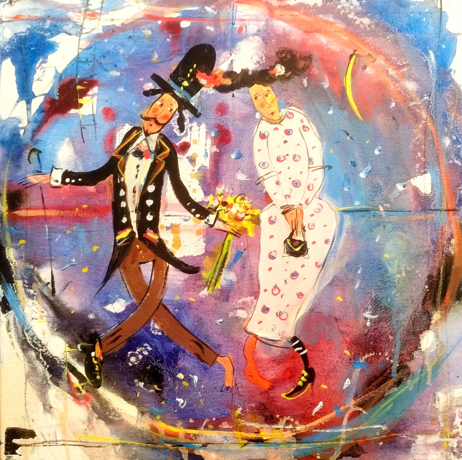 obraz na płótnie 40x40 werniksowany i sygnowany!!Boki obrazu białe / możliwość zamalowania pod kolor obrazu na wyraźne życzenie!/