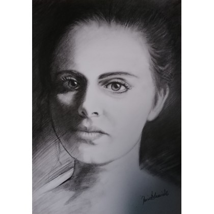 Kobieta z wymyśloną twarzą 3 - rysunek ołówkiem na papierze o wymiarach: 42 x 29,7 cm o gramaturze 250 g/m2.