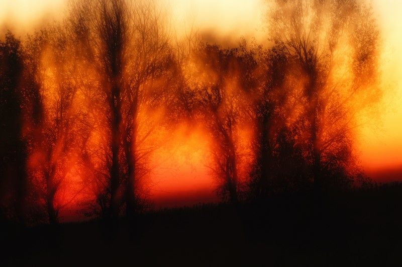 Drzewa o wschodzie słońca.
