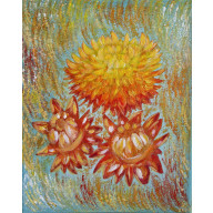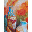 Obraz naciągnięty na blejtram, ma zamalowane boki, sygnowany z przodu i z tylu.