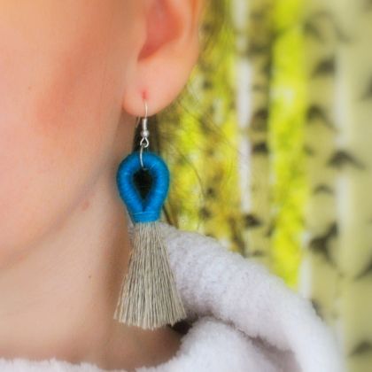 Kolczyki ręcznie wykonane na bazie surowego polskiego lnu w kolorze naturalnym beżowym z czerwonym wykończeniem.
