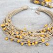 Naszyjnik wykonany ręcznie na bazie surowego polskiego lnu oraz drewna.