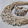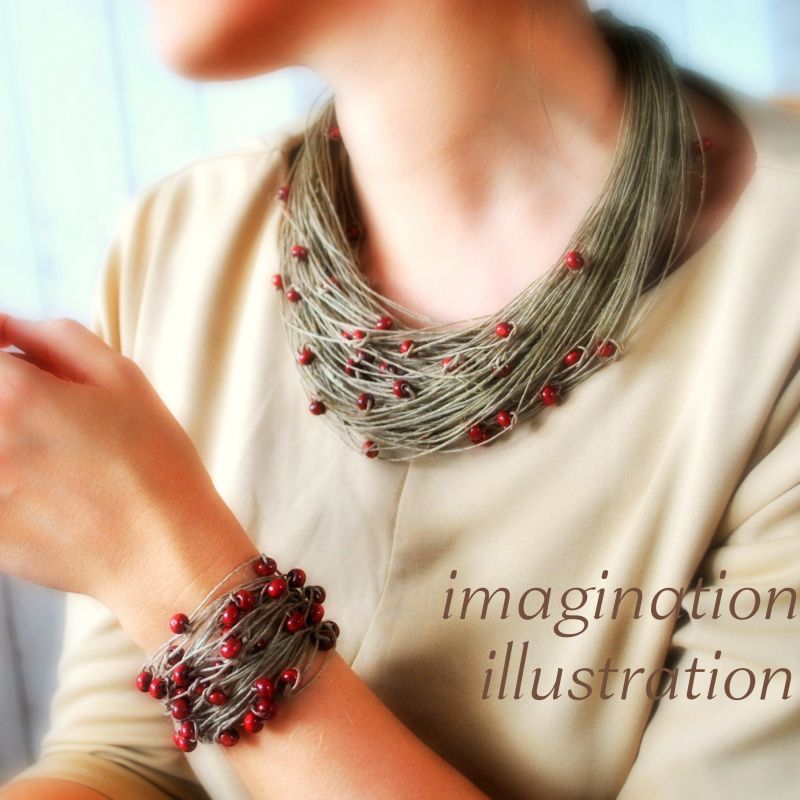 Naszyjnik wykonany ręcznie na bazie nitek naturalnej polskiej przędzy lnianej oraz koralików drewnianych