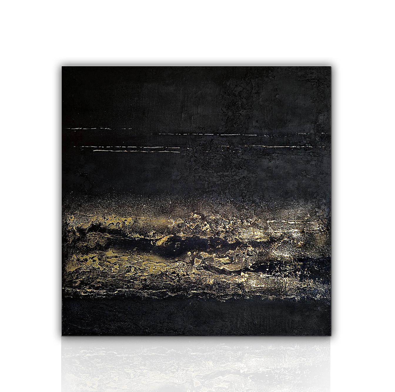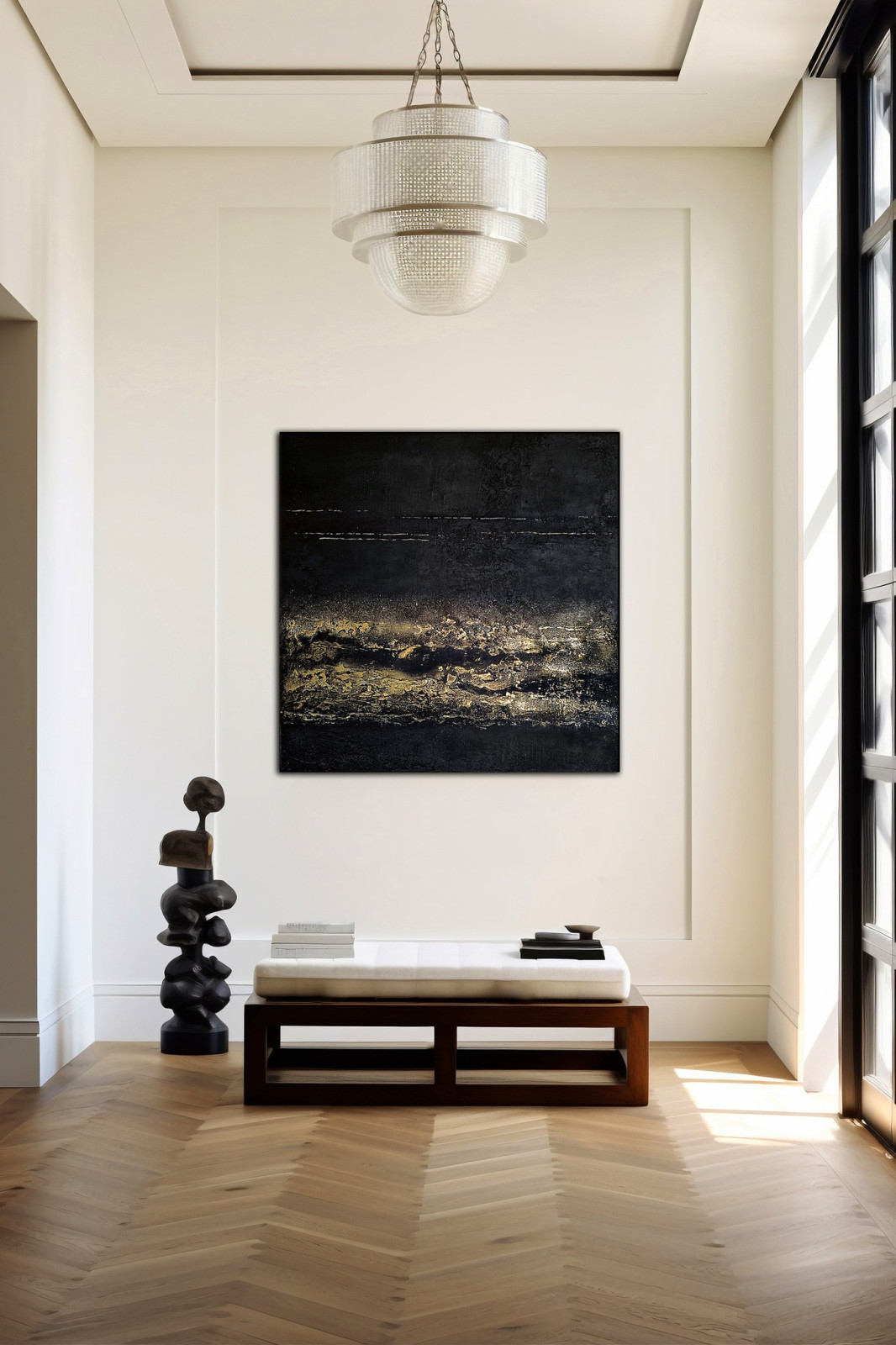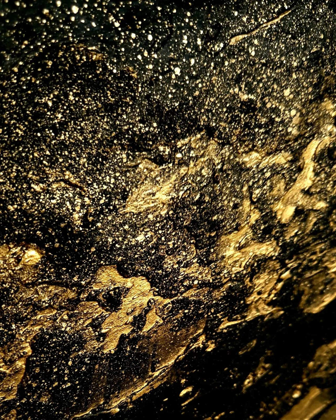Technika: akryl na płótnie, autorska masa strukturalna, złota porporina i farba w sprayu.