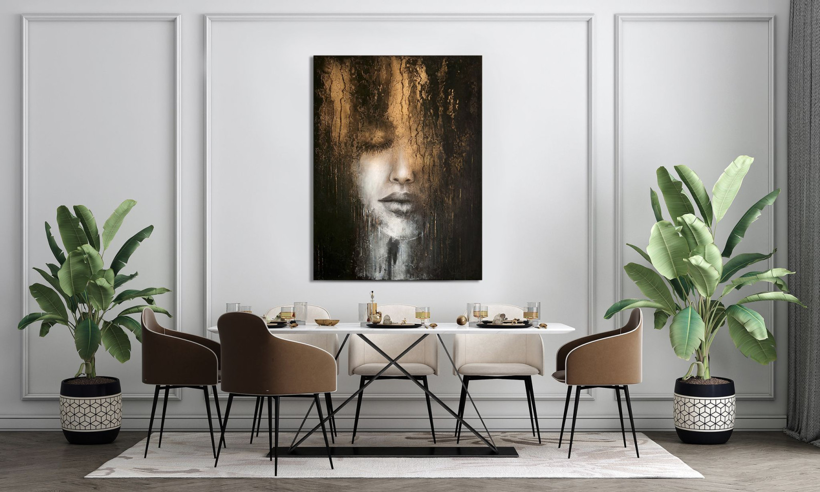 Obraz zmienia tonację złota w zależności od oświetlenia.
