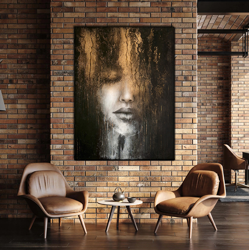Ręcznie malowany abstrakcyjny portret - 90x120 cm