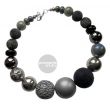 Autorski, piękny naszyjnik z filcu, greckiej ceramiki dwukolorowej, zdobionych kul indyjskich, kul malowanych, fakturowanych, akrylu i