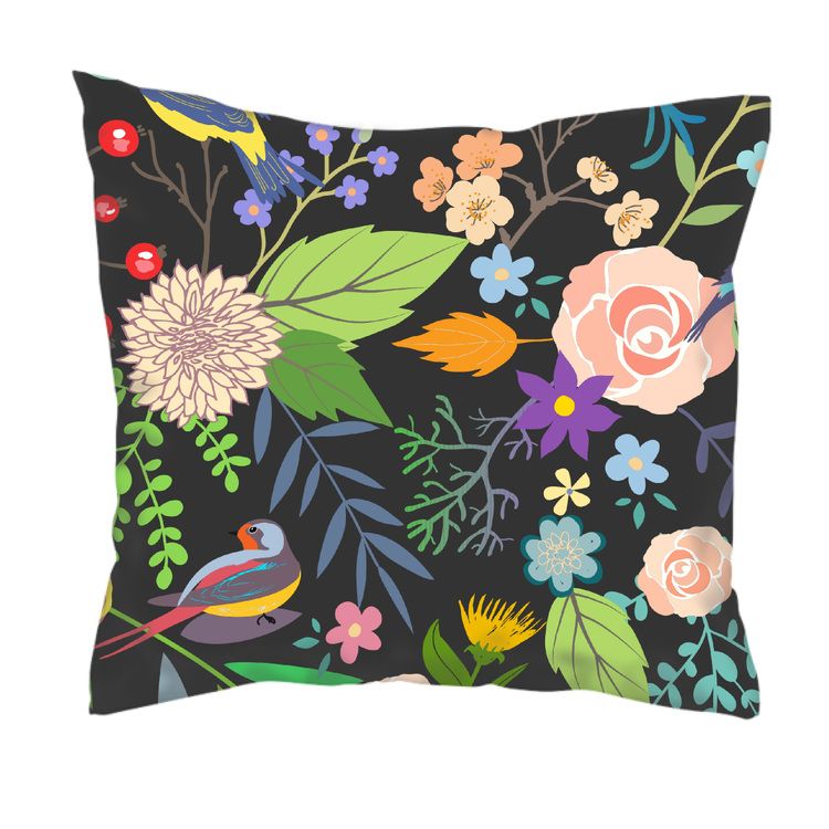 poduszka. kwiaty i ptaki