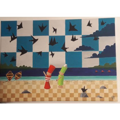 Przepiękna praca, pachnąca morzem i pelna letniego skońca.. Dwa bawiąc się psy natych... >>