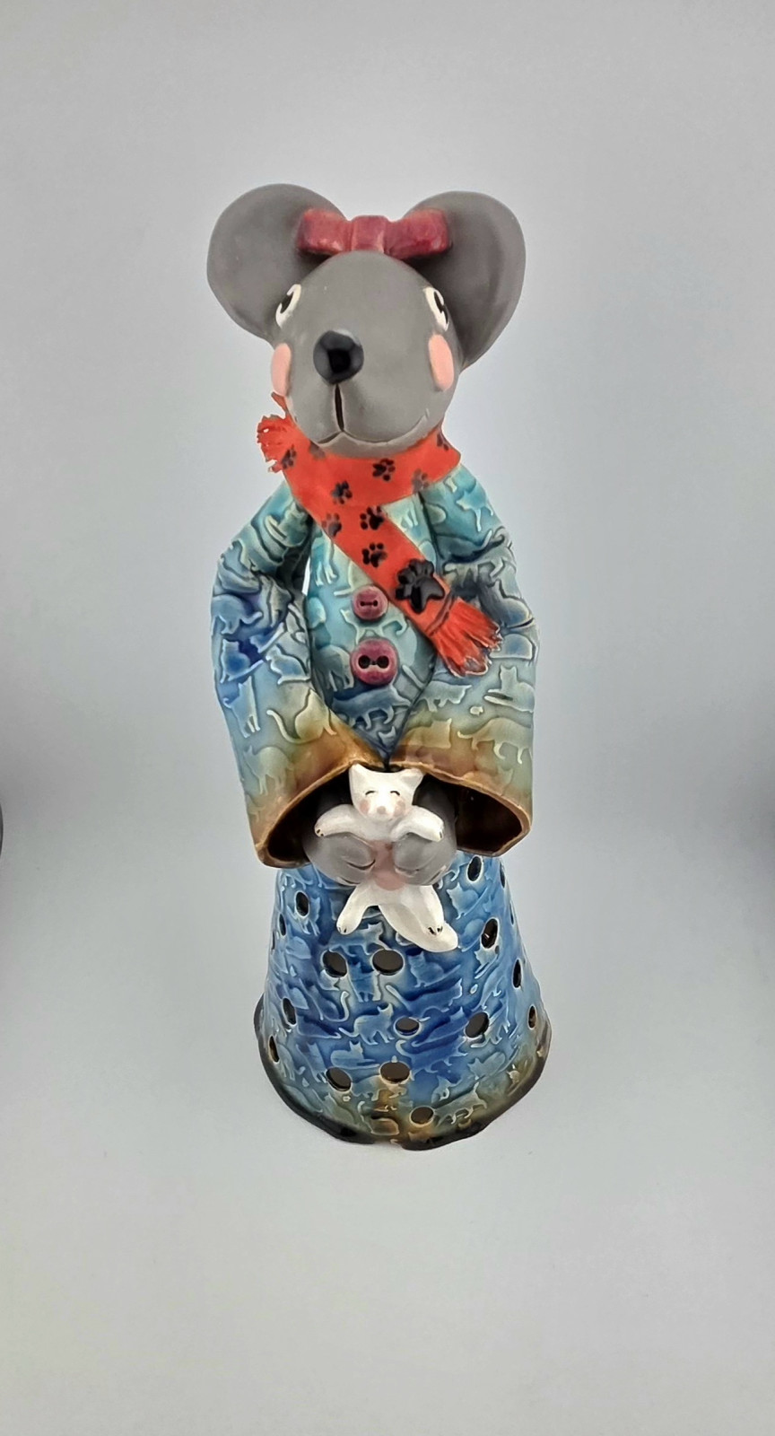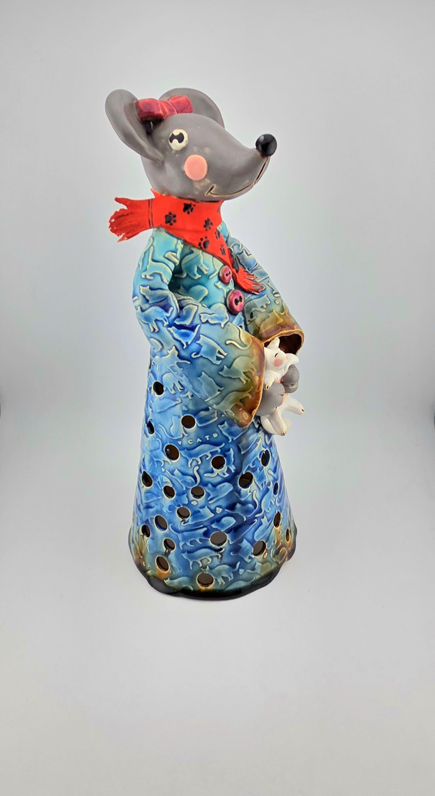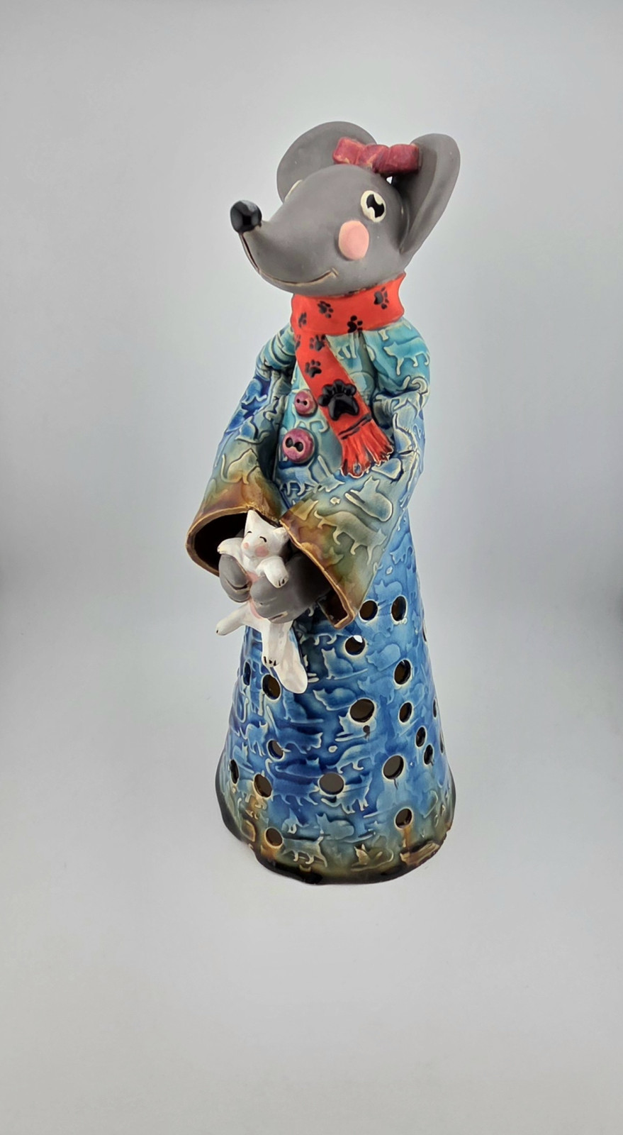Mysz z kotem-rzeźba ceramiczna-świecznik.