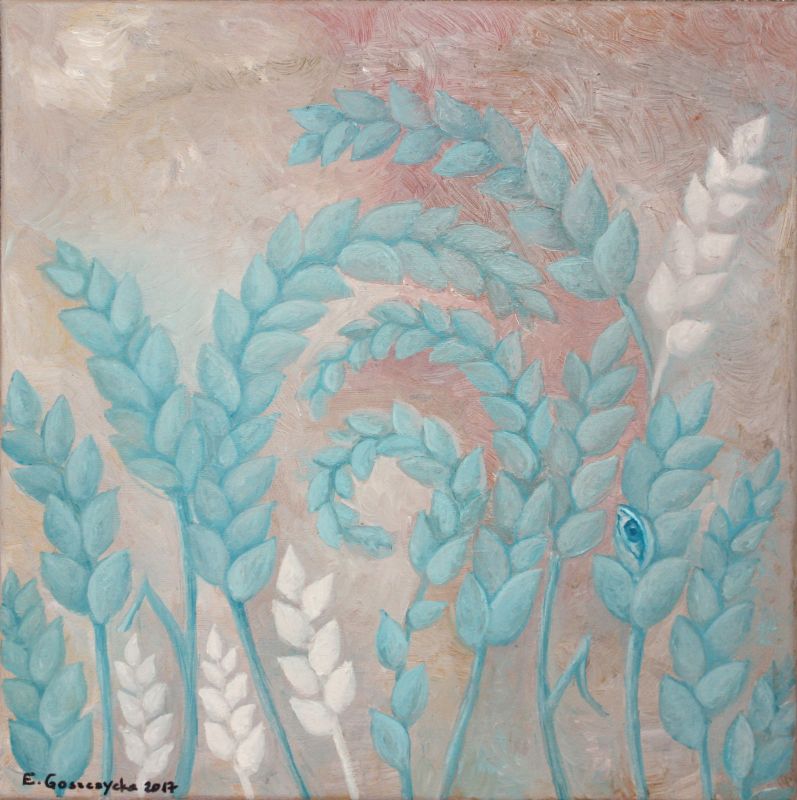 Obraz olejny Niebieskie kłosy, farby olejne na podobraziu płóciennym.