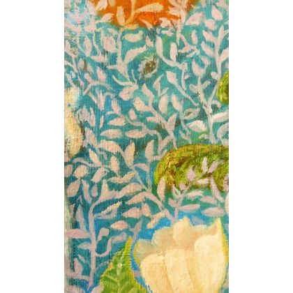 Namalowany na płótnie. Boki jasnoniebieskie.